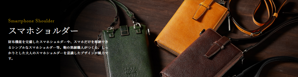 一緒に見ていた妻も興味が湧いてきたみたいで、店員さんの意見も伺い、妻用にはスマホショルダーに決定。シダーの色も、革の触り心地も最高だったようで、早速旅行時に使用していました。ほぼスマホしか入らないですが、この割り切り感が決め手だったようです。(公式サイトより)